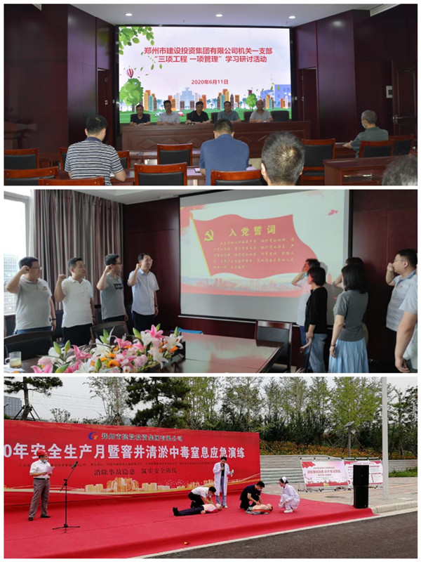 牢记初心使命,争当出彩先锋。七一前夕,集团党委所属各支部以纪念建党99周年为契机,结合实际,扎实开展“牢记初心使命、争当出彩先锋”主题党日活动。机关一支部开展“三项工程、一项管理”学习研讨活动,就如何充分发挥基层党组织的战斗堡垒作用、党员的先锋模范作用,用党的组织资源撬动社会力量做好群众服务工作,更好的服务群众献言献策,为这一市委中心工作凝聚思想共识、形成工作合力。机关二支部重温入党誓词,全体党员面向党旗,佩戴党徽,举起右手,握紧拳头,在李蔚书记领誓下,庄严宣誓,铿锵有力的誓词,增强了全体党员的光荣感、责任感和使命感。市政建管中心党支部在杏贾路工程施工现场,开展了以窨井清淤突发安全事故为科目的应急救援演练活动。这一活动有效提高了工程管理领域的安全生产意识,为集团公司高质量发展营造了良好的安全环境。咨询公司党支部组织“集中缴纳党费”主题党日活动,全体依次按照党费标准足额缴纳了党费。通过集中收缴党费,增强了全体党员的责任意识,以强烈的“仪式感”进一步强化党员“身份感”,引导广大党员提高党性修养,充分发挥先锋模范作用,在工作中争先锋、做表率。管线户外联合党支部在我市架空通信线入地改造工程地下通信管道建设中设立党员示范工地,形成以点带面的示范作用,营造支部“比、学、赶、帮、超”建设竞赛浓郁氛围,在实战中练兵,在一线中出彩。赫喆公司党支部开展“BRT站台环境设施改造”主题实践活动,结合我公司户外广告媒体形式以实际行动推动城市规划、建设、管理全面提升,持续进行BRT站台环境设施规划、整改、清洁工作。文博项目临时党支部开展讲党课活动,党委委员、副总经理汪洋宣讲全国两会精神,重点加大对“民法典”和涉港决定的学习。